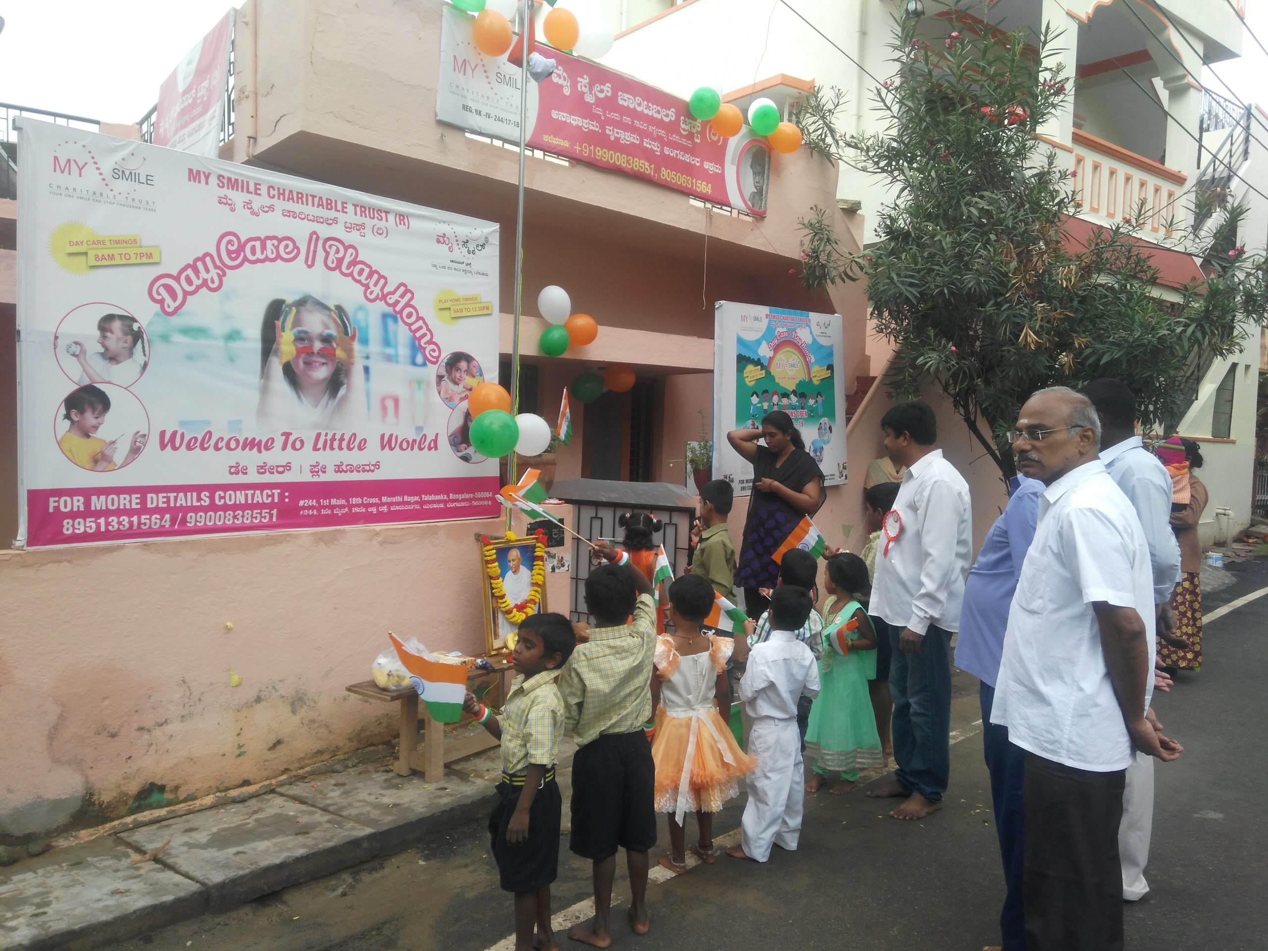 August 15, 2018, My Smile Charitable Trust celebrated Independence Day by hoisting the flag and singing national anthem in Ashrama. People of Maruthinagar also participated in hoisting the flag.