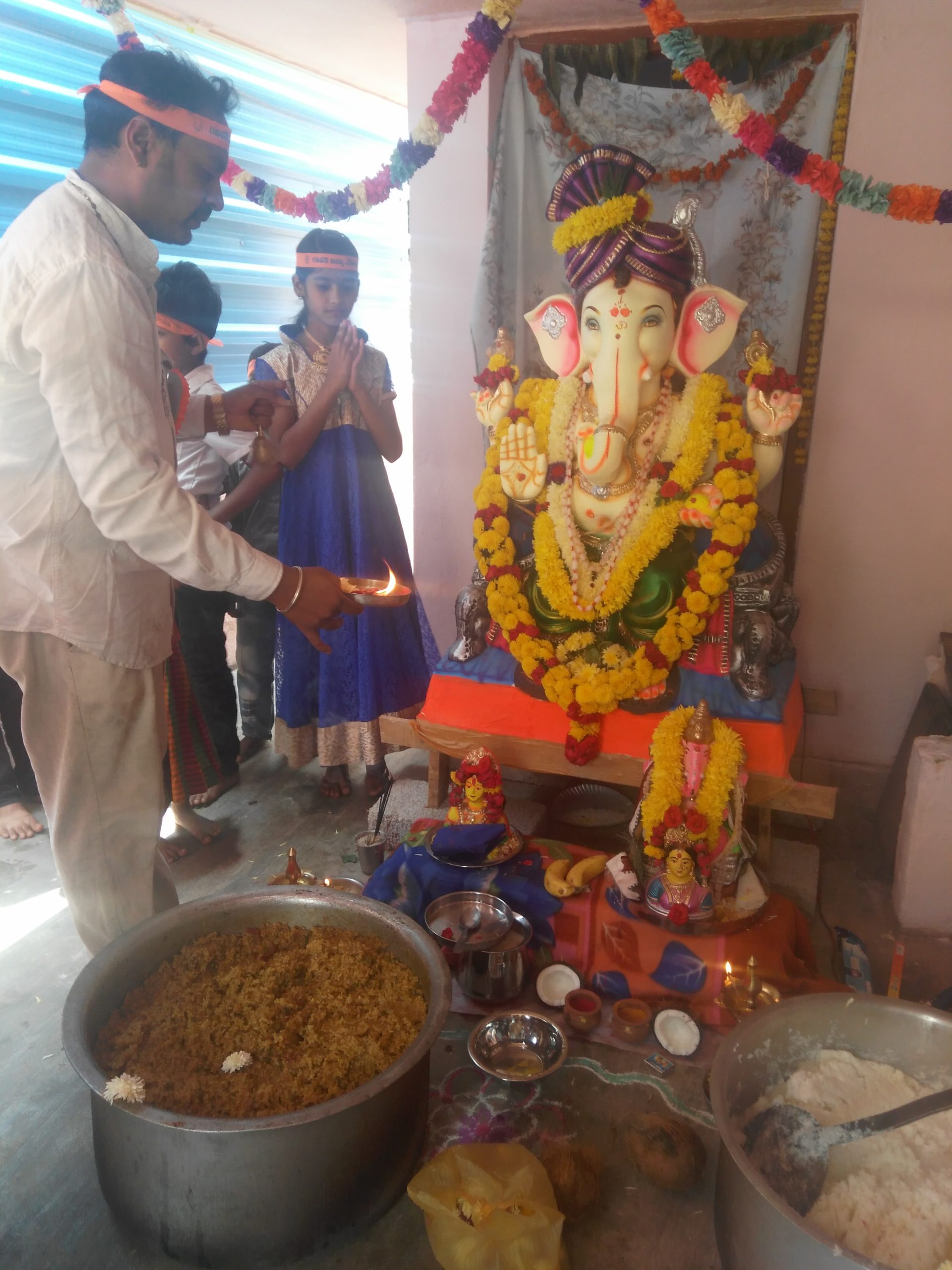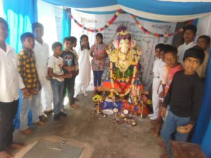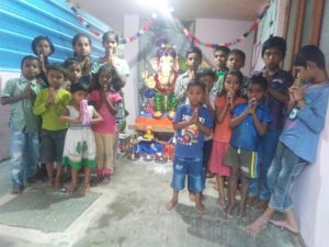 September 2018 My Smile Charitable Trust kept the sculpture of Lord Ganesha for 11 days and served pooja’s. On the last day of the festival the people of Maruthinagar were given prasadam (Festive food).
